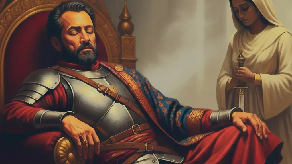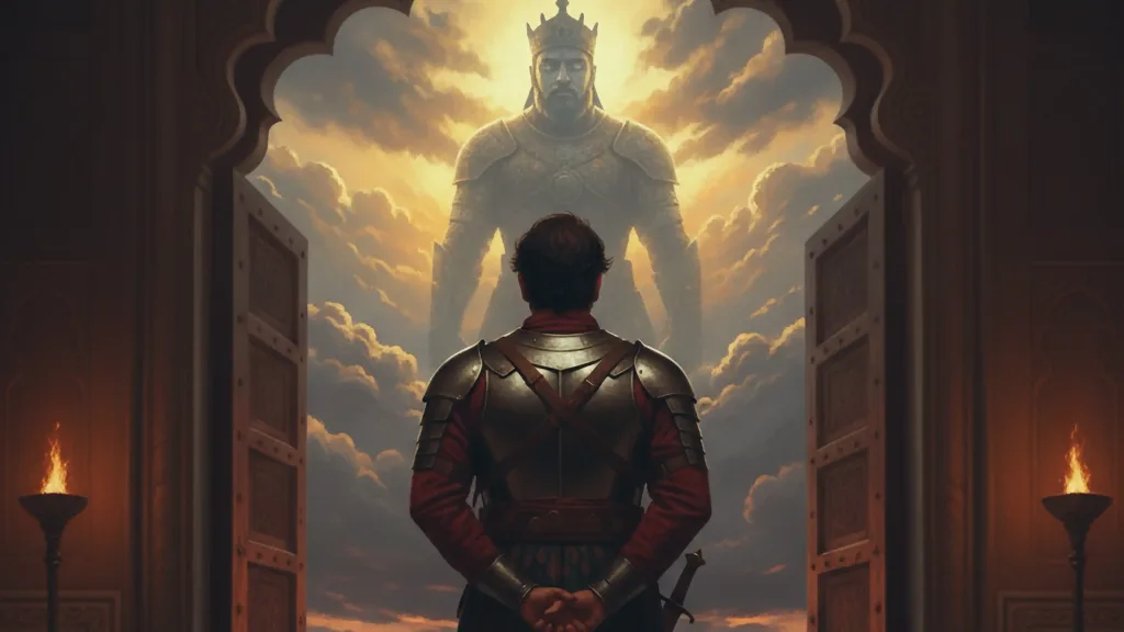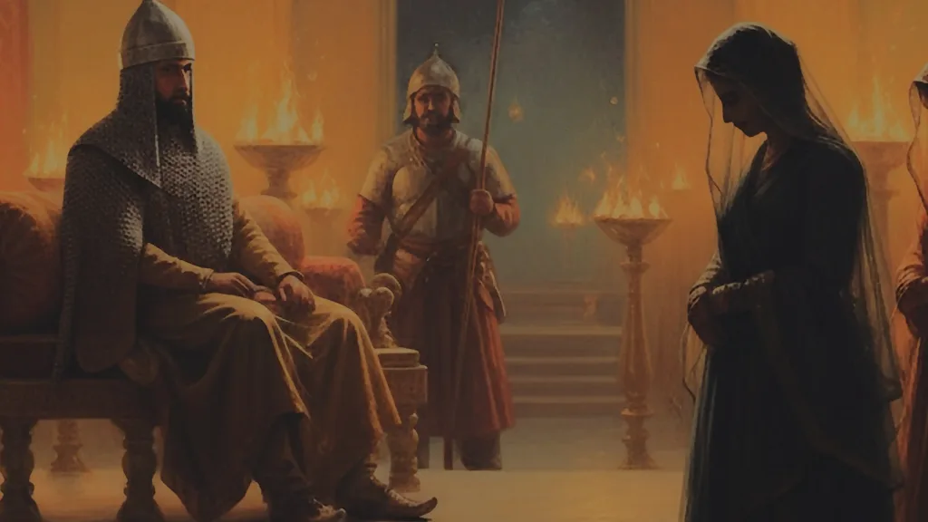 اس کے بعد وہ تھوڑی دیر تک اسی عالم میں آنکھیں بند کیے ہوئے پڑا رہا لیکن کب تک۔ آخر کار وہ اپنا سر جھٹک کر اِس طرح اُٹھ بیٹھا جیسے نیند سے بیدار ہوا ہو۔ چند لمحے بعد وہ شاہی محل کی خواتین سے کہنے لگا کہ تمہیں اپنی قسمت پر شکایت نہیں کرنی چاہیے۔