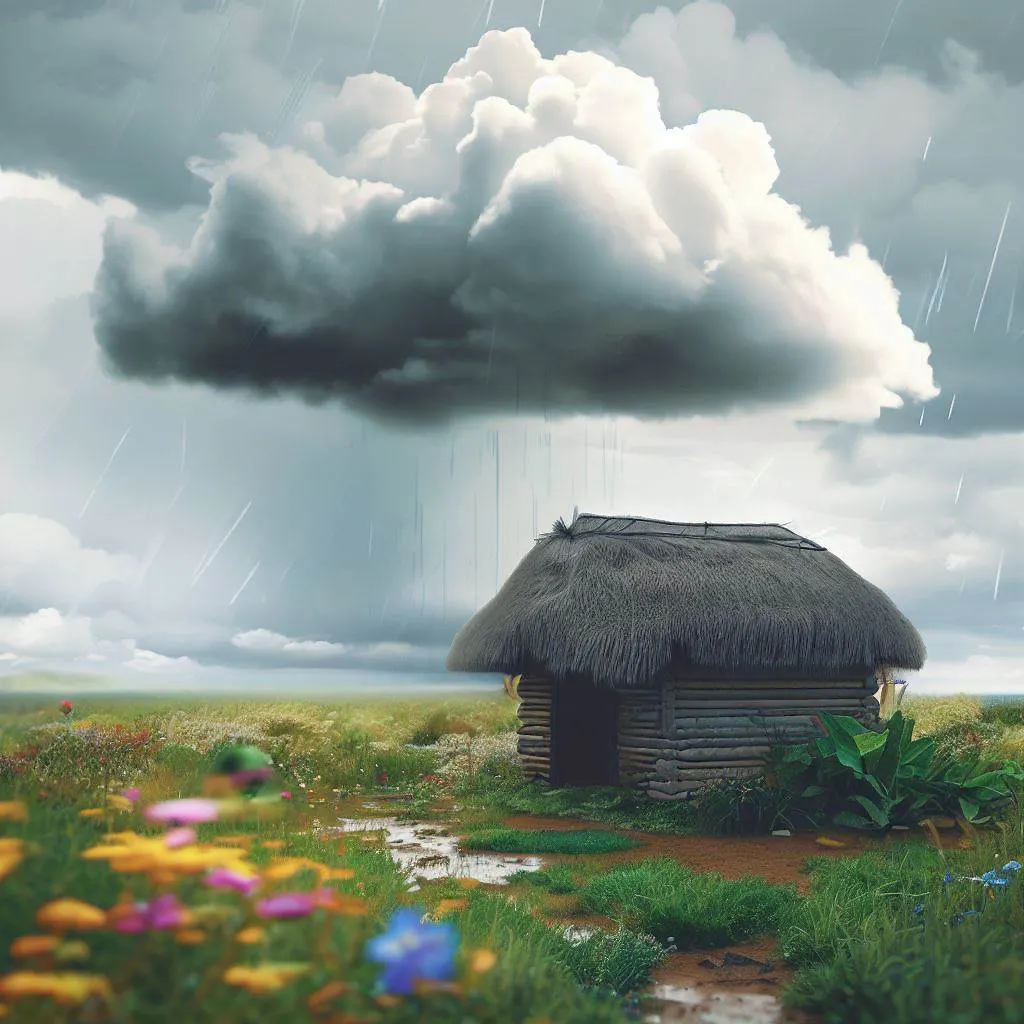 اس شعر میں قدرت اور قدرت کے مناظر جیسے کہ بادل اور پانی کی تباہ کاری فطرت اور خصلت کو اُجاگر کیا گیا ہے۔ جو اس کی موجودگی اور عدم موجودگی دونوں سے آتی ہیں۔
