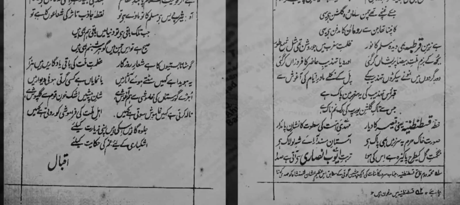 مسلمانوں نے قسطنطنیہ پر کئی مرتبہ حملے کیے۔ سلطان محمد فاتح عثمانی نے 1453ء میں اسے فتح کیا اور اسلام بول نام رکھا۔ یہ سرزمین بھی دلی، بغداد اور قرطبہ کی طرح مسلمانوں کی نظروں میں محترم ہے کیونکہ ایک تو یہ شہر سلاطینِ عثمانیہ کا پایہ تخت رہ چکا ہے، جنہوں نے کم و بیش پانچ سو سال تک اسلام کی عظمت قائم رکھنے کے لیے اپنا خون پانی کی طرح بہایا اور تنِ تنہا بیت المقدس کی حفاظت کے لیے سارے یورپ کا مقابلہ کیا اور جب تک عربوں نے ان کےساتھ غداری نہ کی، انگریزوں کو ان کے مقاصد میں کامیابی نہ ہوسکی۔